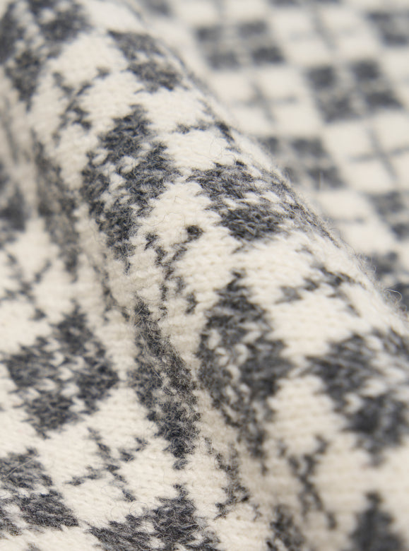 Un cardigan décontracté avec une simple patte de boutonnage et des poches en maille. Notez les bords-côtes classiques. Un mélange de fibres recyclées, décliné dans un motif traditionnel écossais Argyll (qui s'écrit également à l'écossaise).