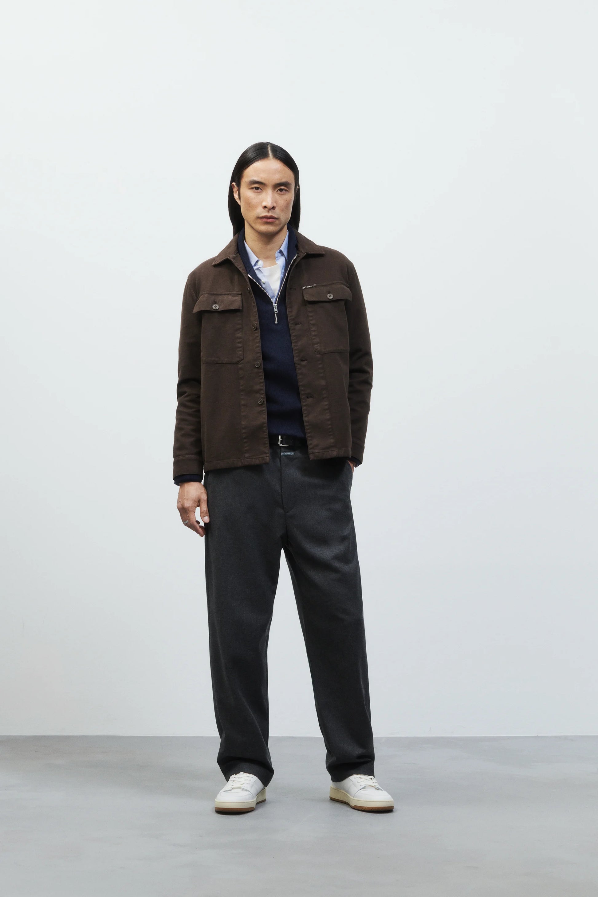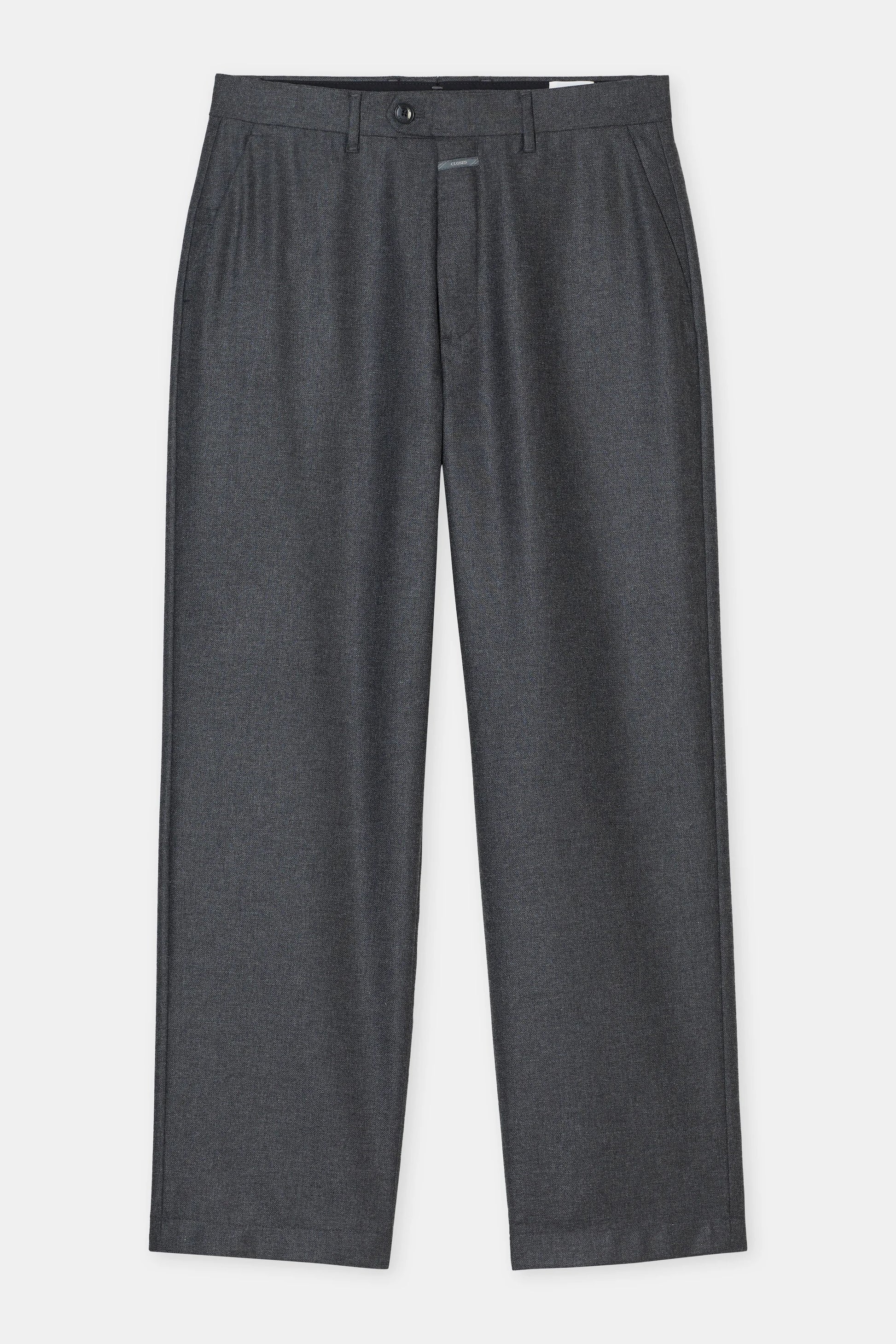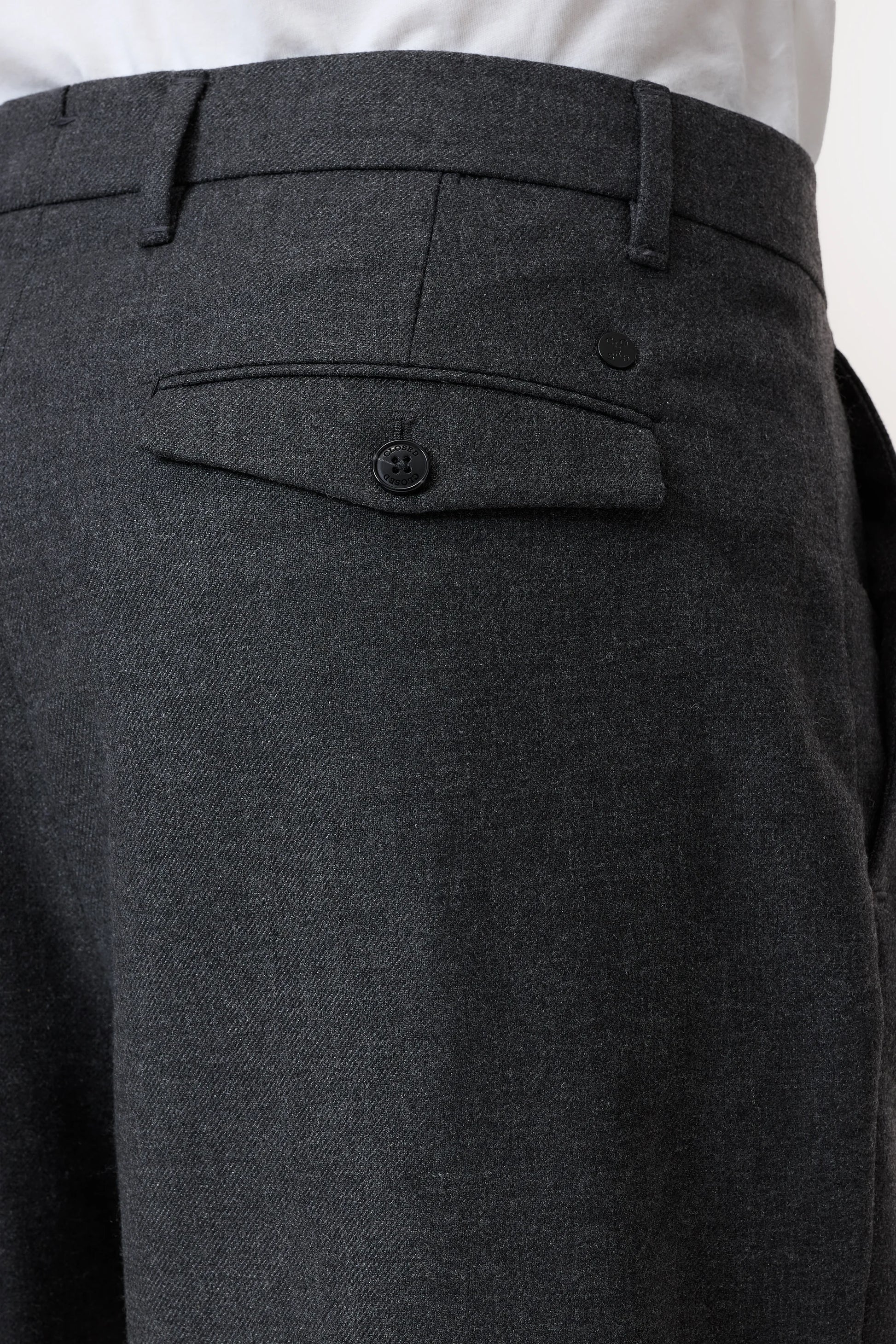 Pantalon relaxed à taille haute et jambe droite. Confectionné en flanelle italienne douce en mélange de laine avec un aspect brut authentique. Le tissu offre confort naturel et toucher raffiné. Fabriqué avec soin en Turquie.