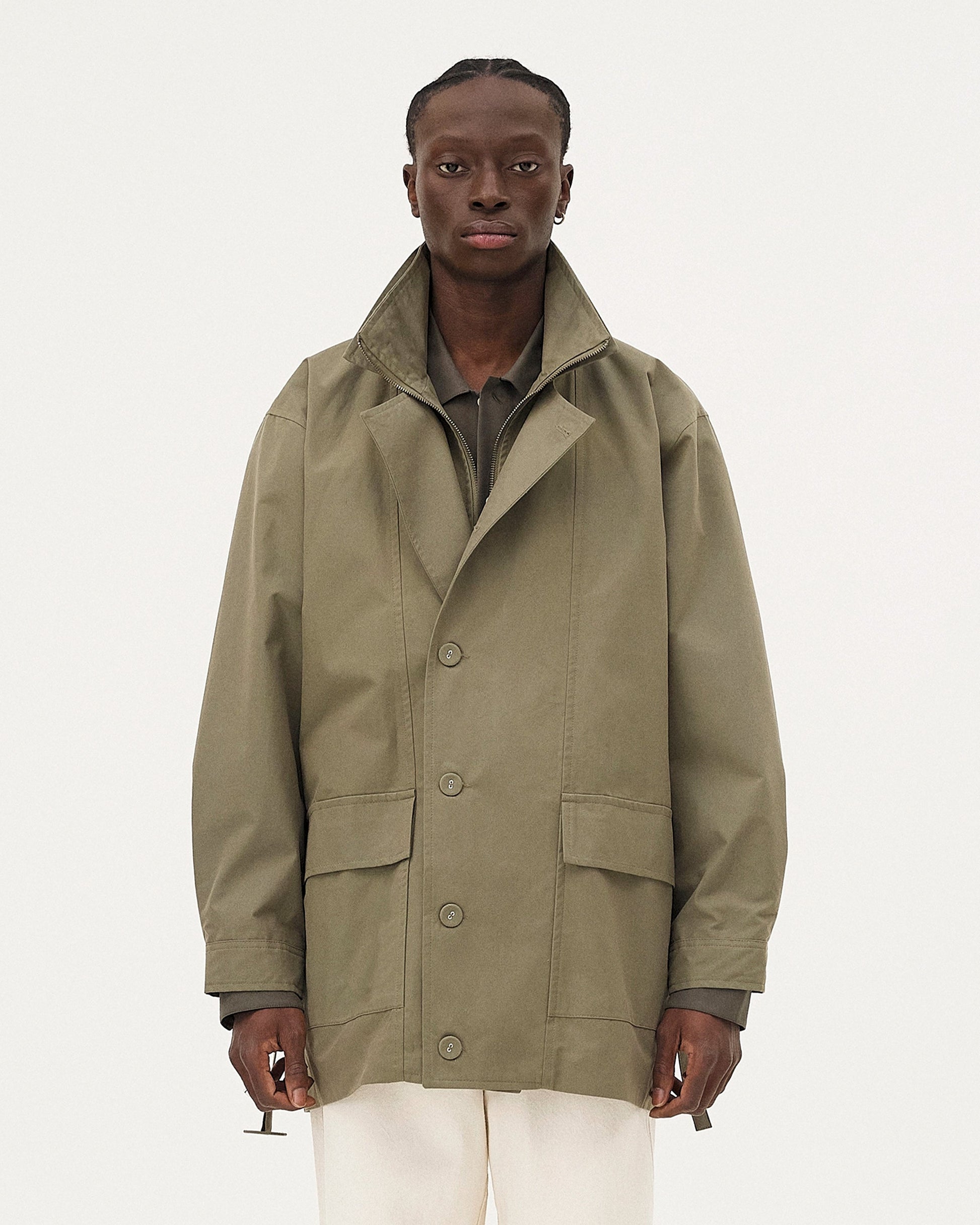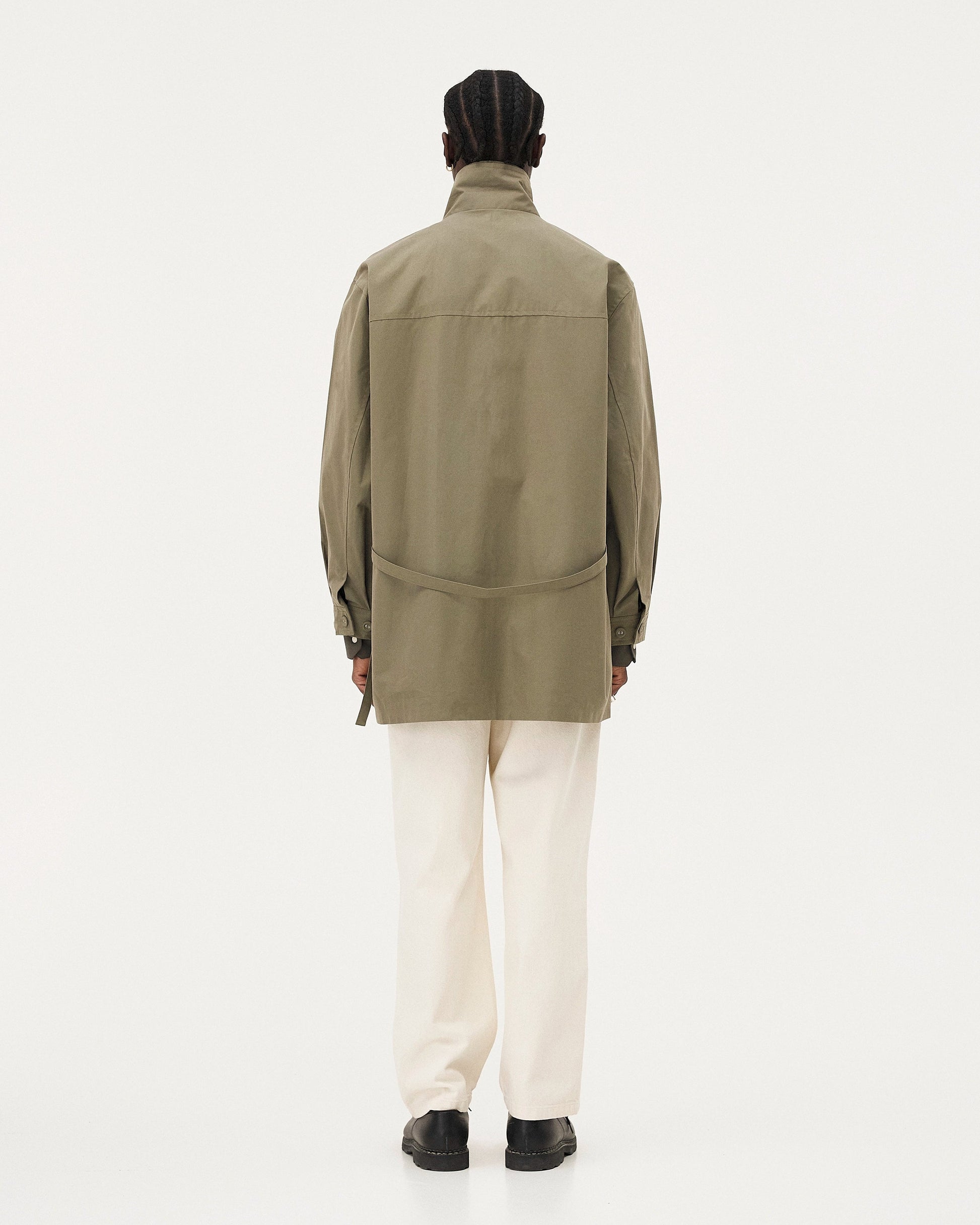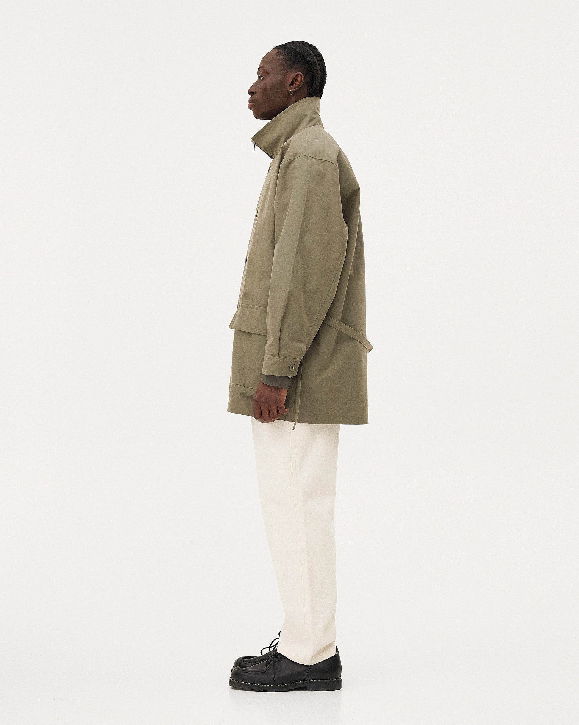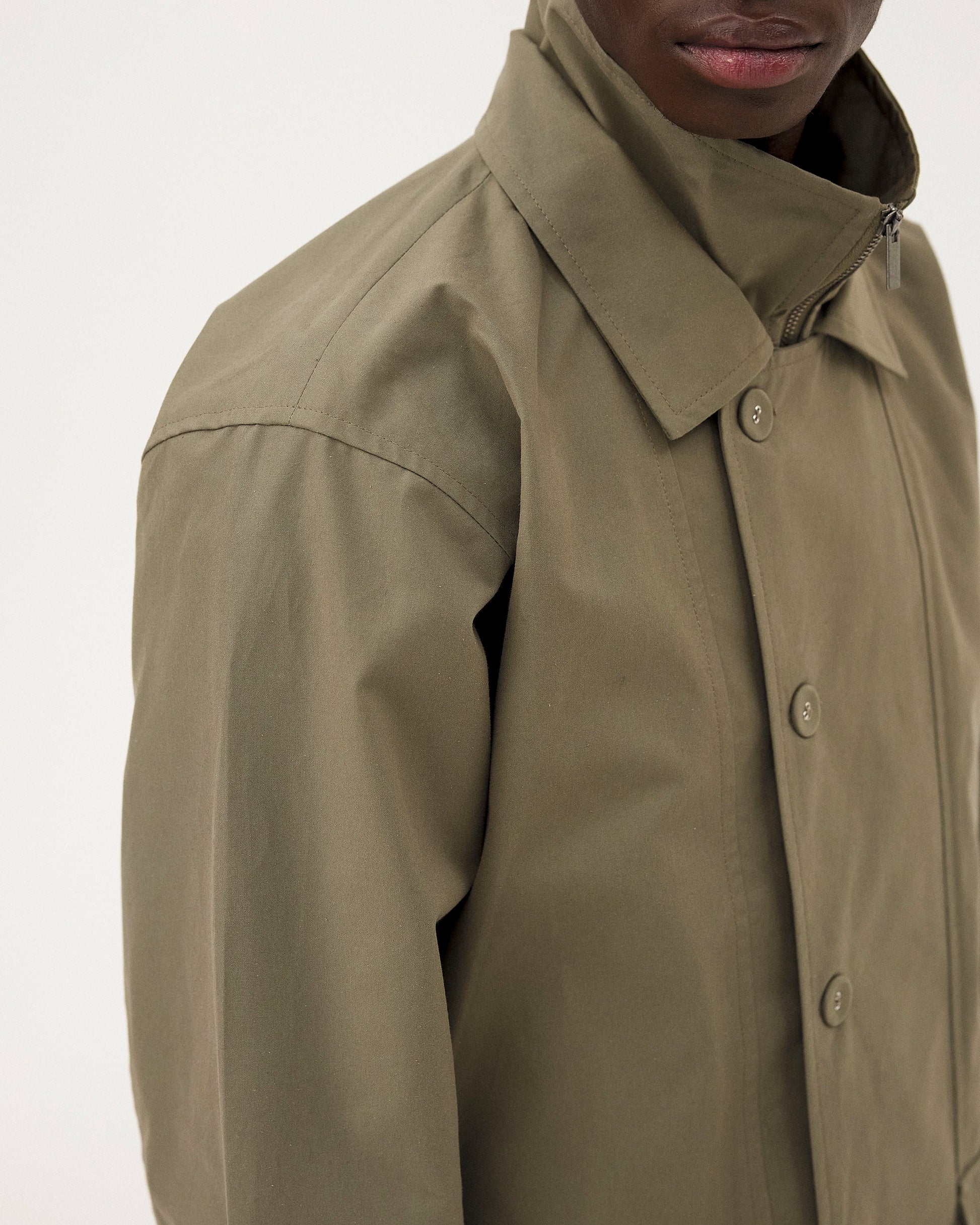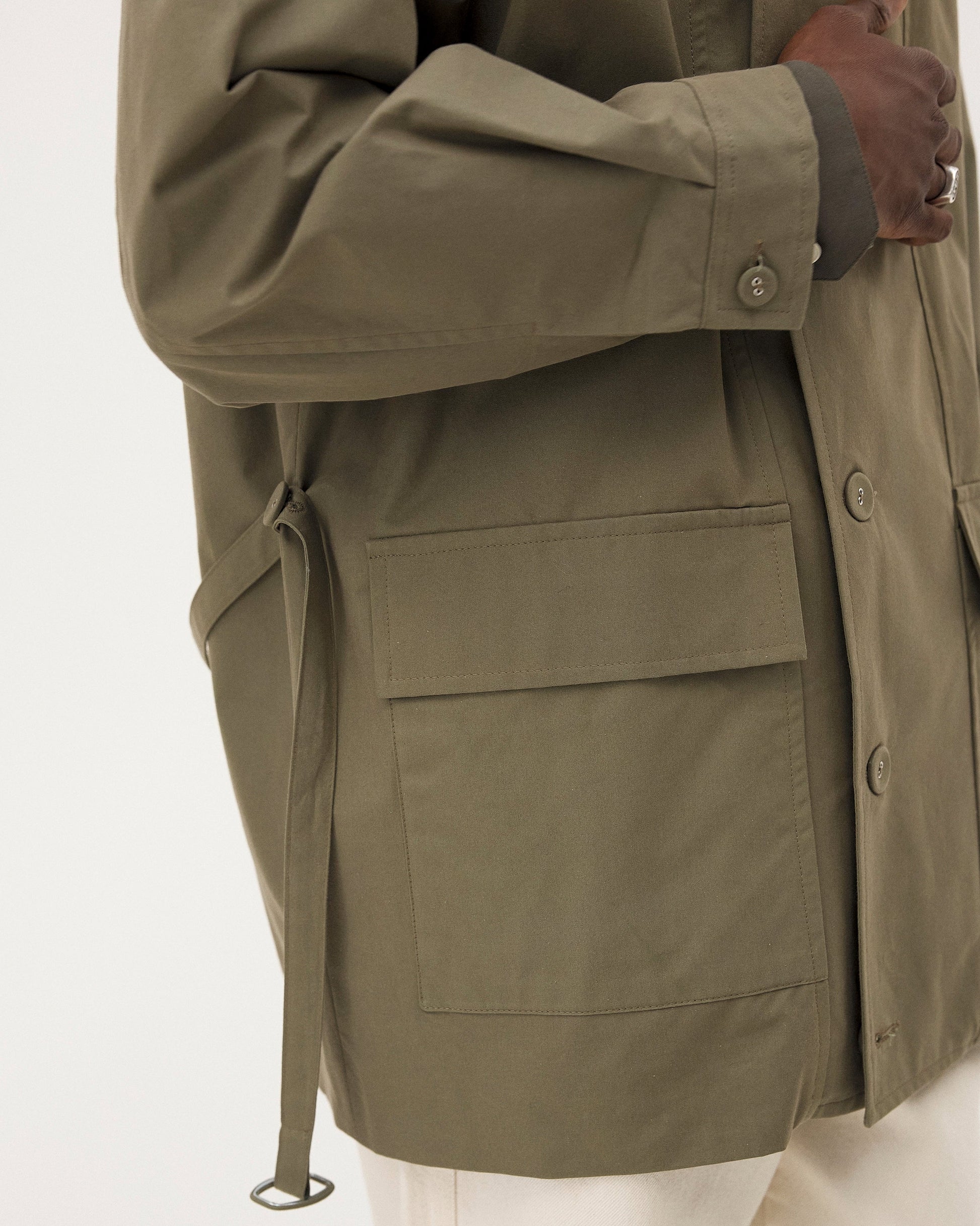 Le modèle Haro est une veste qui mêle les codes de la veste de travail workwear et de la parka. Elle se distingue par ses nombreux détails : un double col, avec une partie zippée surmontée d'un col italien, des poches à rabat, des manches coudées, ainsi qu'une fermeture double avec zip et boutons. Elle est confectionnée dans une toile de coton biologique déperlante tissée en Ecosse.