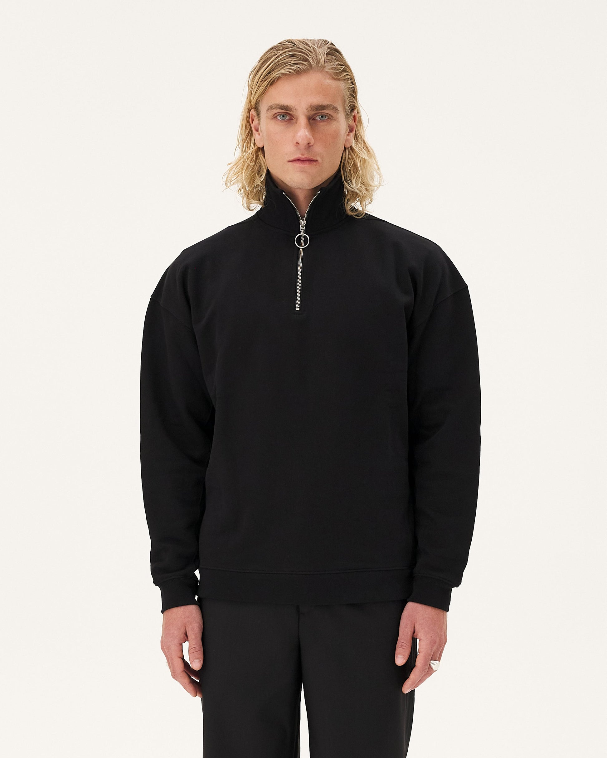Le sweatshirt Omaha est confectionné dans un jersey épais à la structure sèche et non brossé. La pièce présente un col montant zippé, des manches basses et des finitions côtelées. Il est confectionné en coton biologique de qualité supérieure.