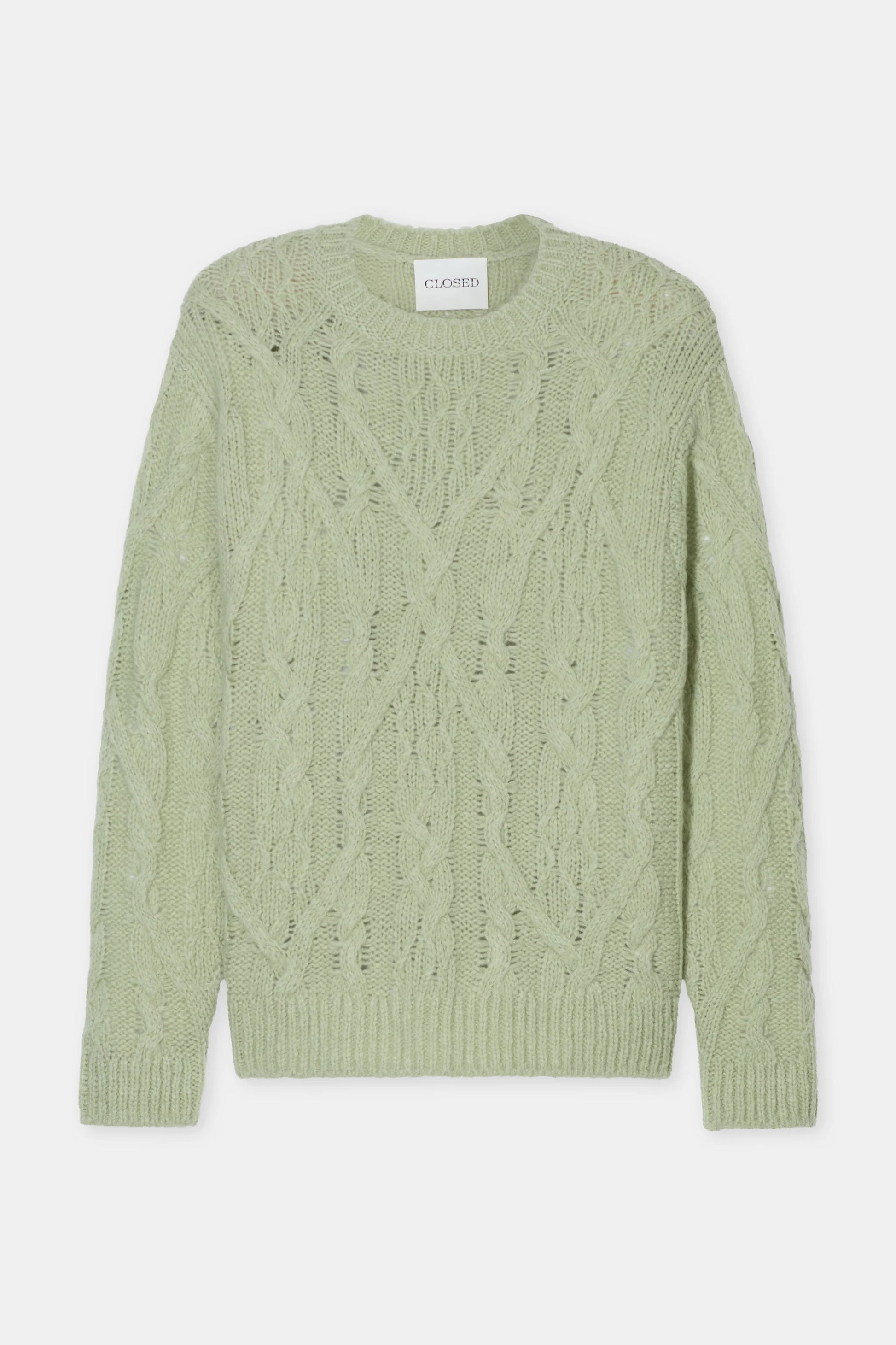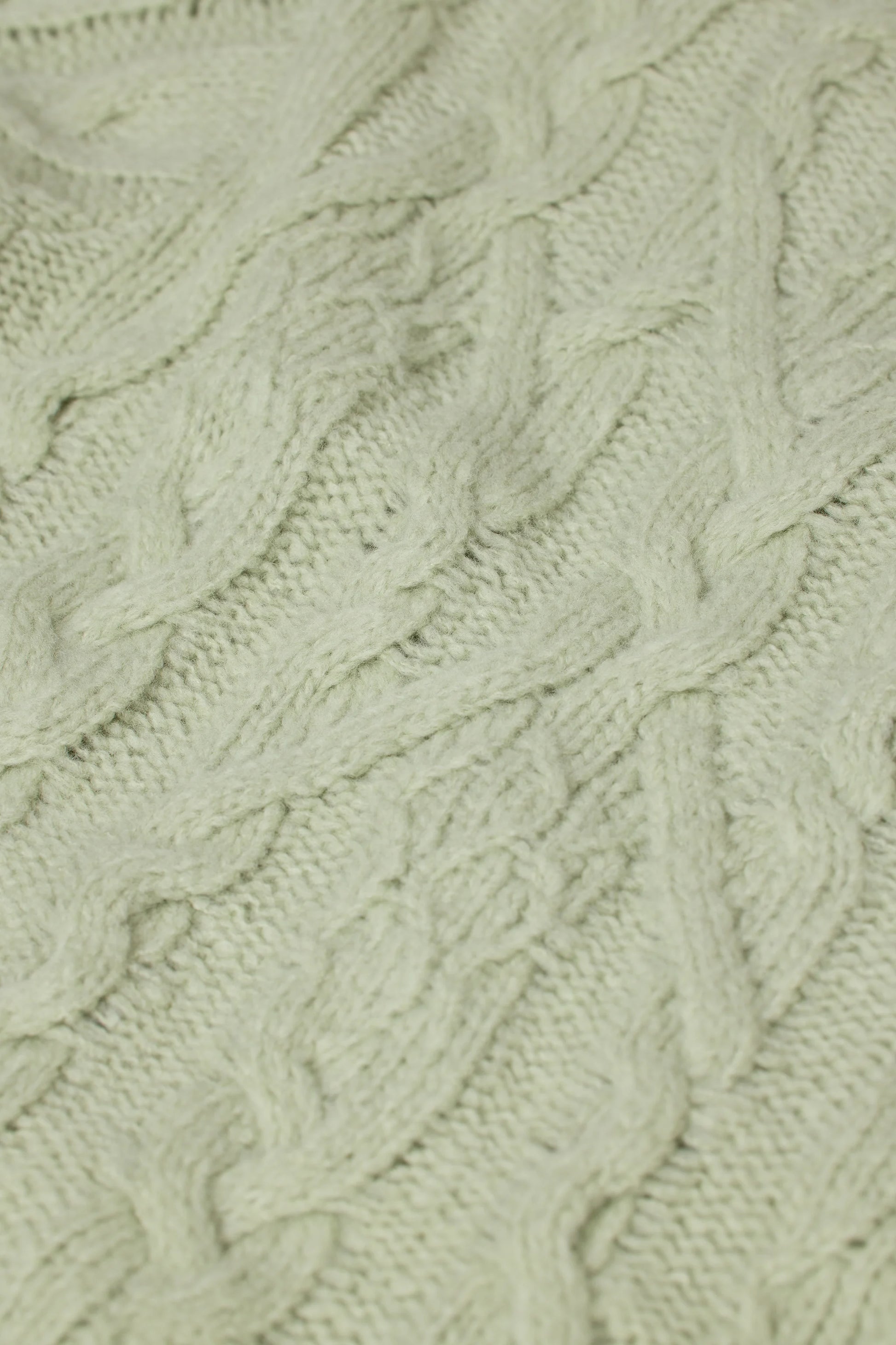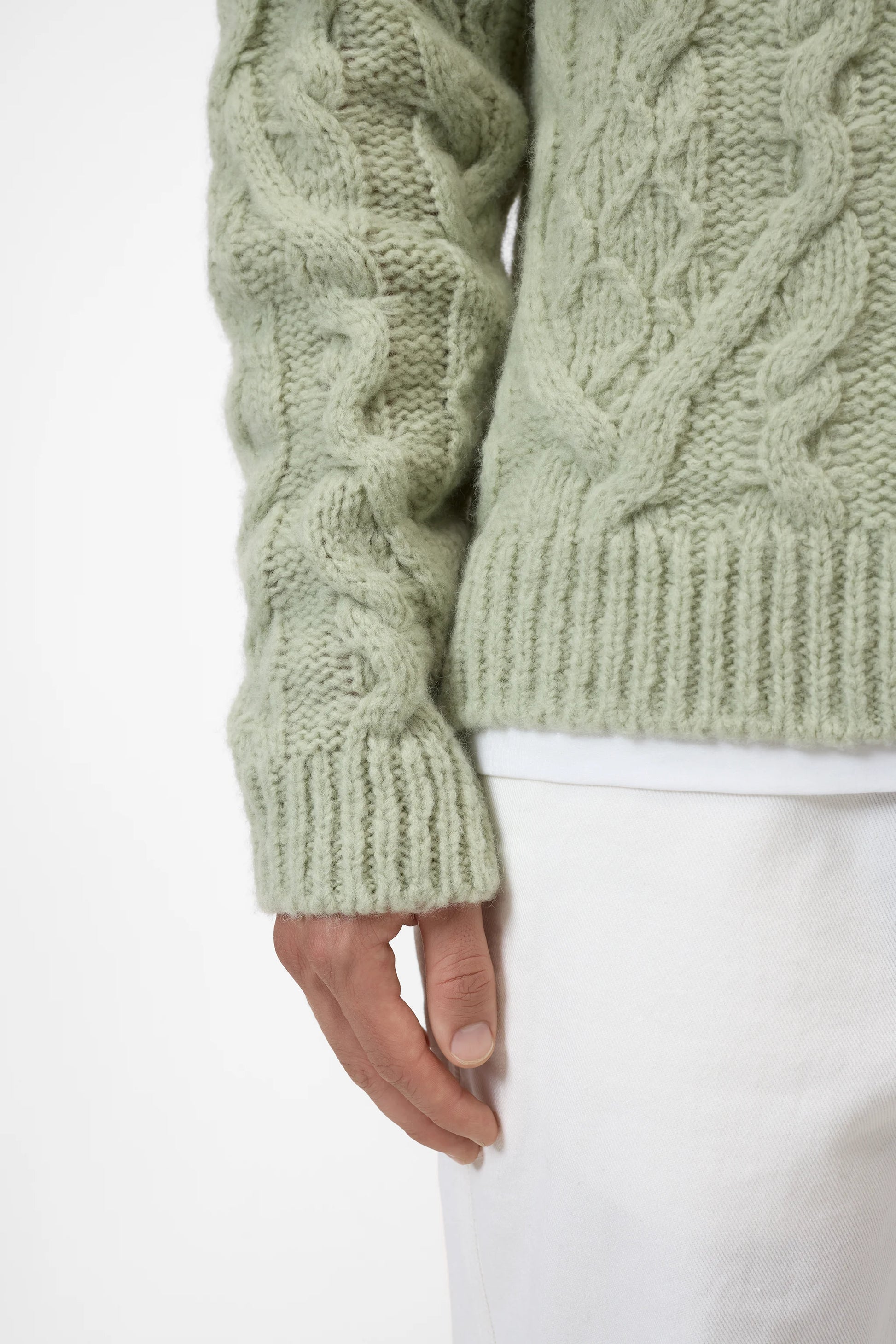 Ce pull torsadé à la coupe régulière est confectionné dans un mélange de laine duveteux qui offre chaleur et texture. Le motif torsadé apporte une touche classique, complétée par des finitions côtelées au col, aux poignets et à l’ourlet.
