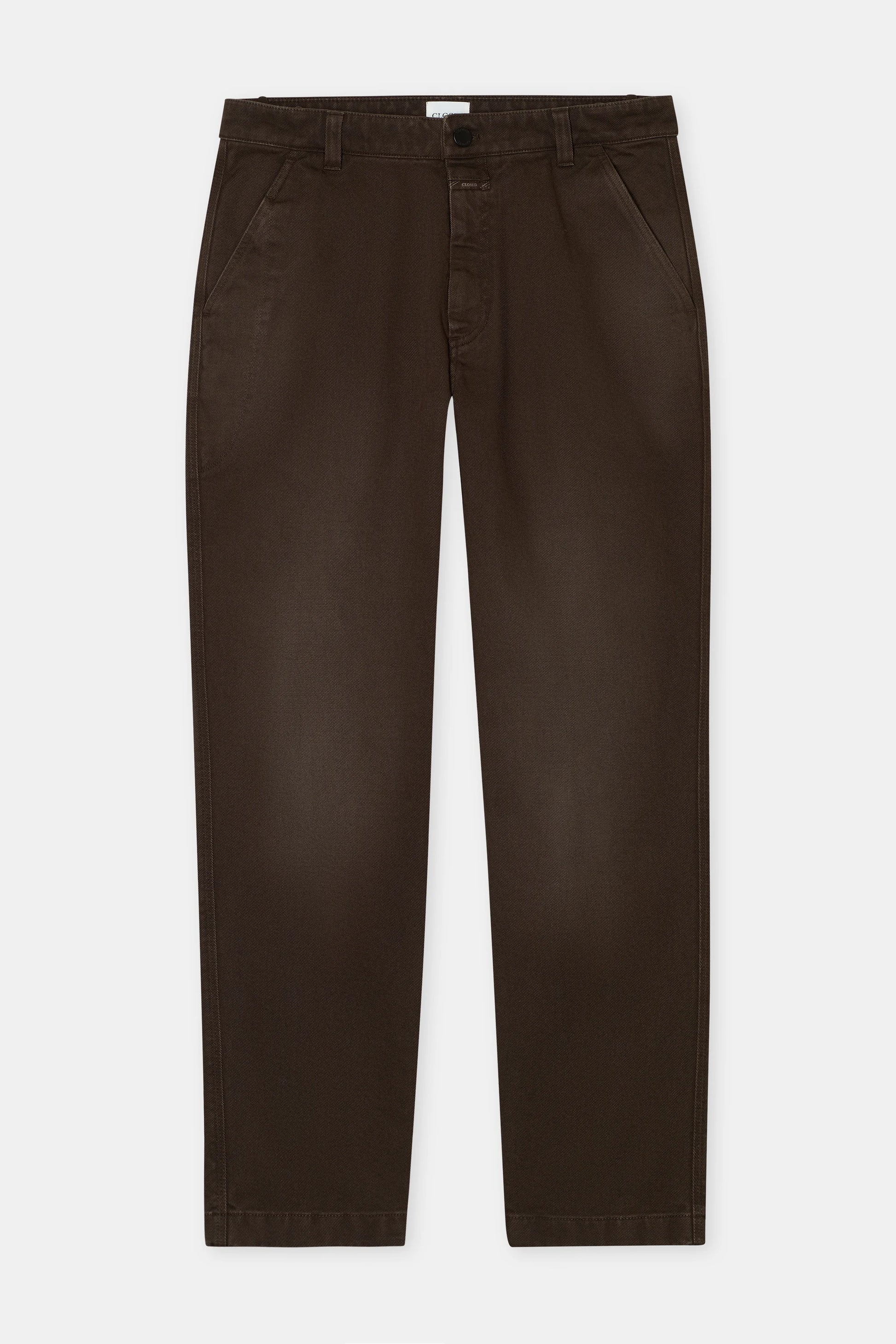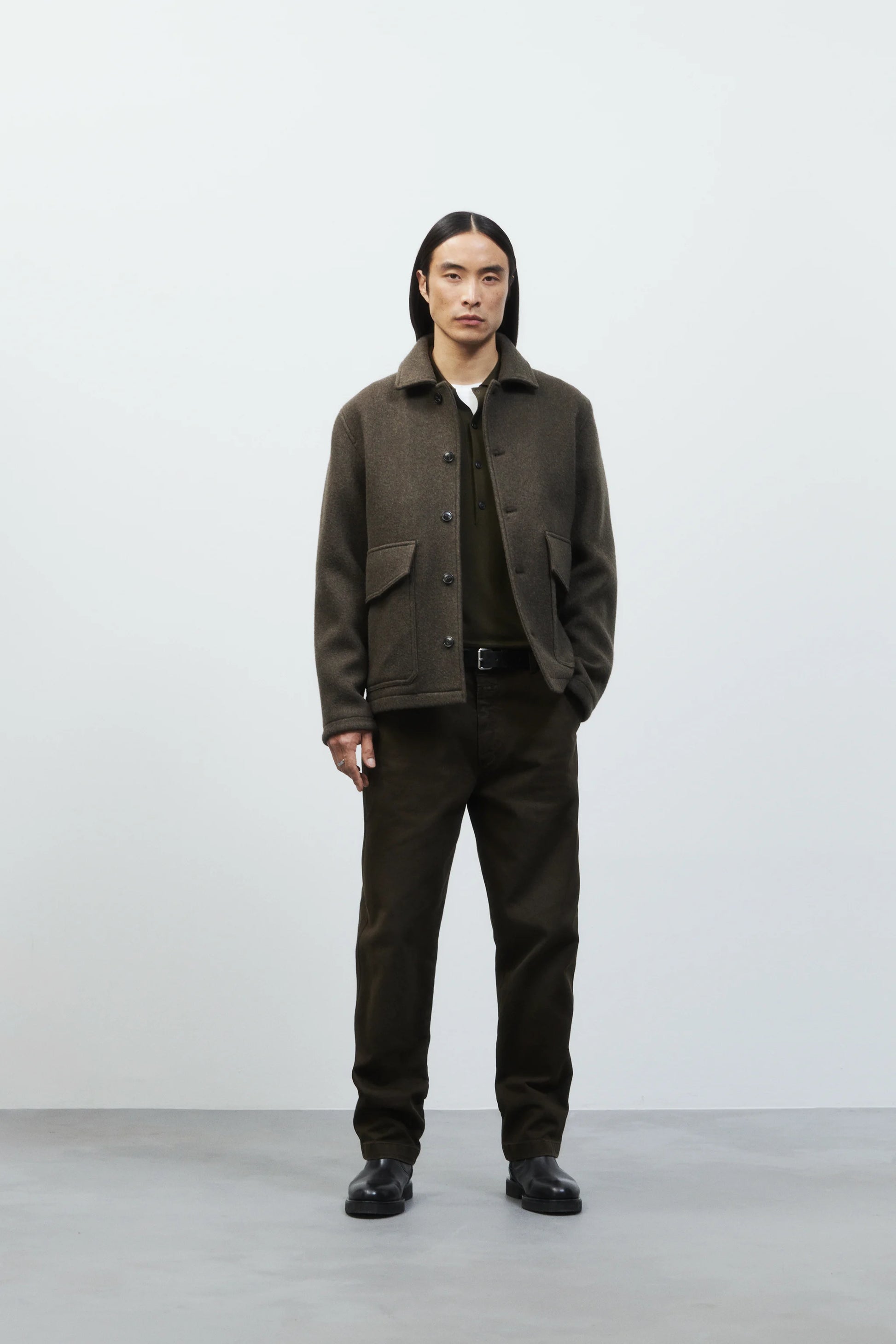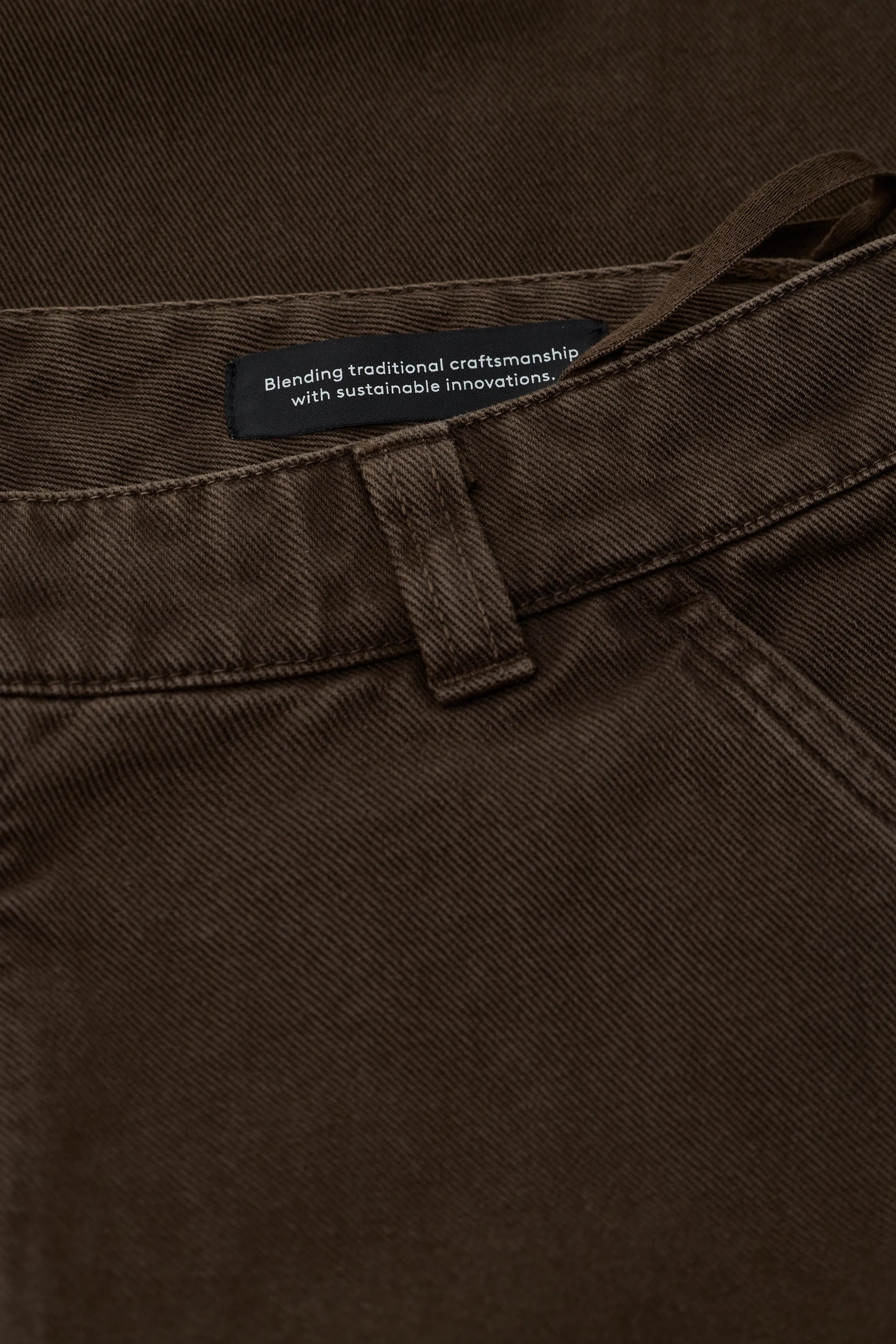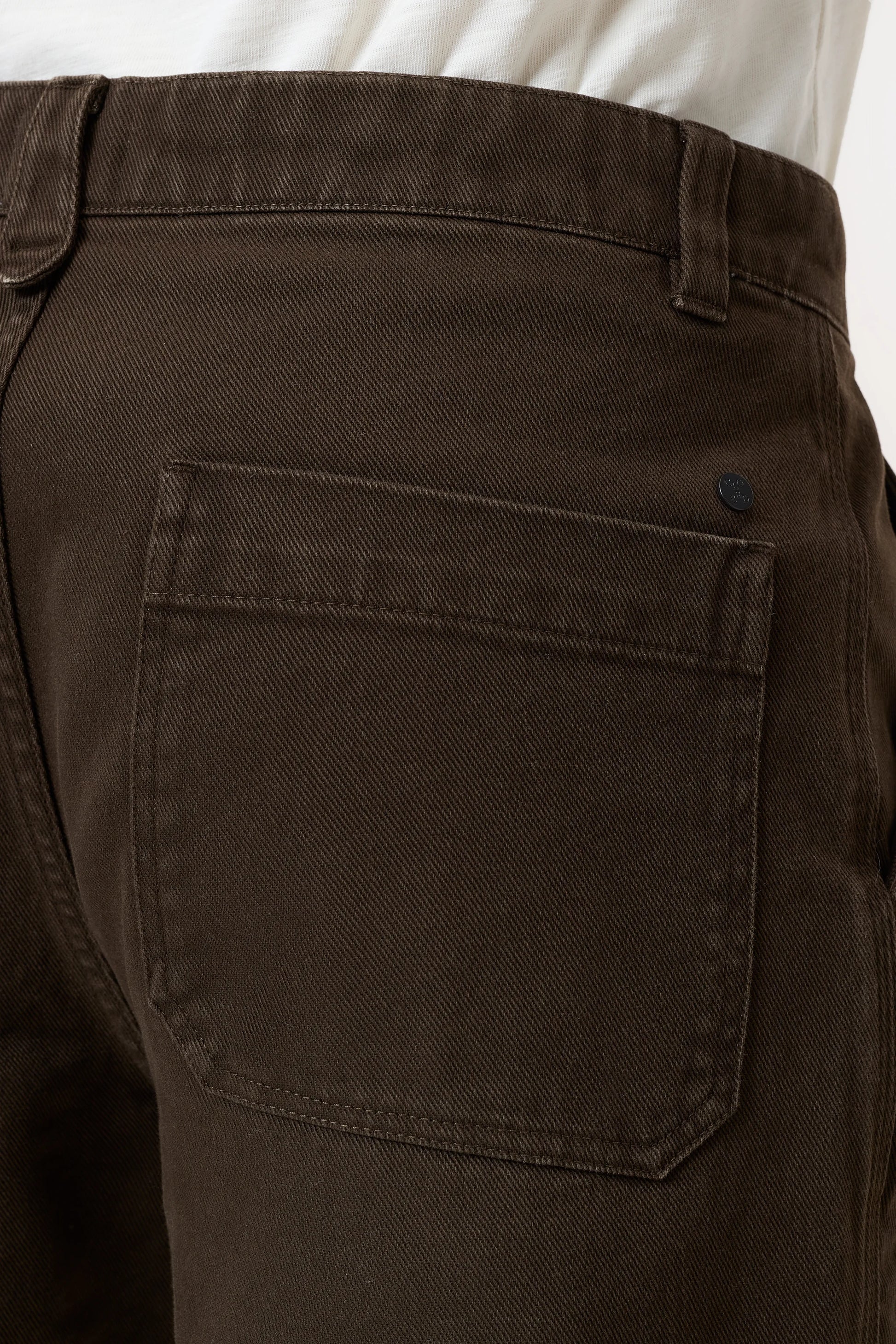 En tissu chevron bicolore exclusif avec finition garment-dye pour un aspect vieilli. Ce chino worker coupe relaxed présente une taille mi-haute, jambes régulières, poche à couteau sur la jambe droite et poches françaises renforcées.