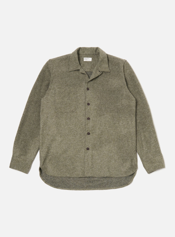Une surchemise à deux poches, facile à porter, avec un col d'une seule pièce conçu pour être porté ouvert, mais avec l'ajout d'une fermeture à bouton et boucle.