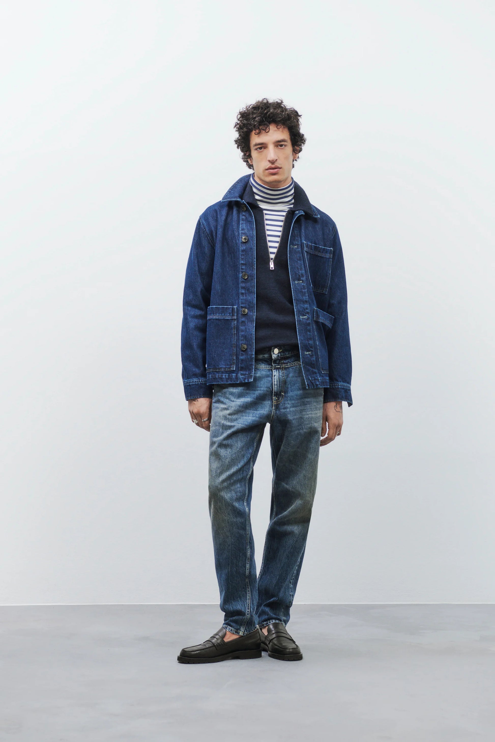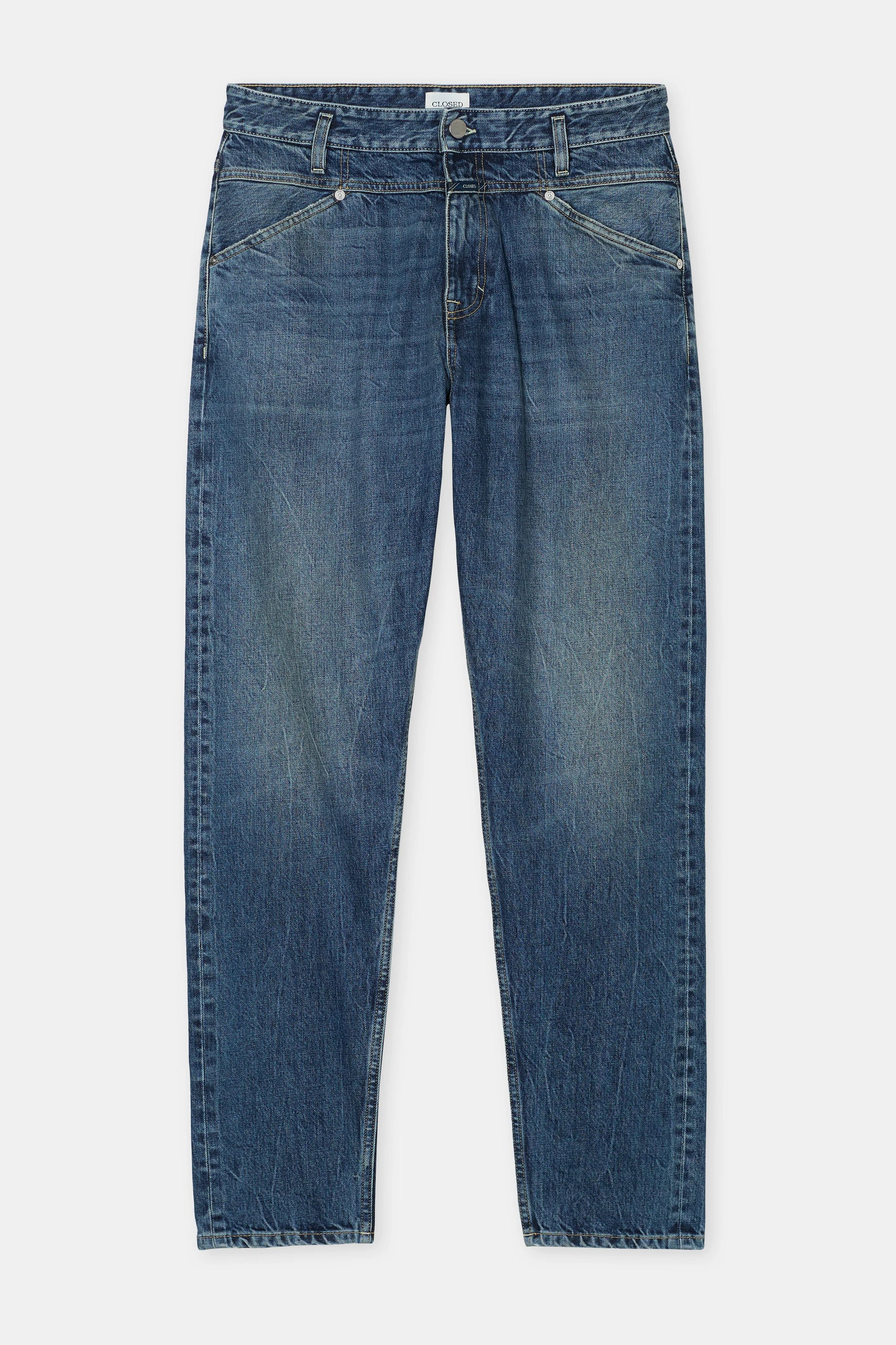 Notre jean coupe regular avec taille mi-haute et jambe classique. En denim 13,5 oz tissé sur métiers à navette, avec délavages hauts et bas aux genoux, lignes d’eau irrégulières et pigments appliqués à la main pour un caractère vintage. Avec poches X emblématiques et coutures triples sur les côtés. Fabriqué en Italie avec 100 % coton régénéré et indigo éco-responsable.
