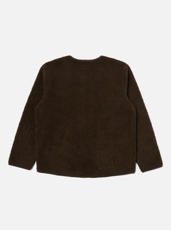 Une veste ample aux accents militaires. Une pièce pratique, facile à enfiler et déstructurée. De coupe simple, elle est dotée de deux poches plaquées et d'une bordure en coton. Polaire confortable façon sherpa.